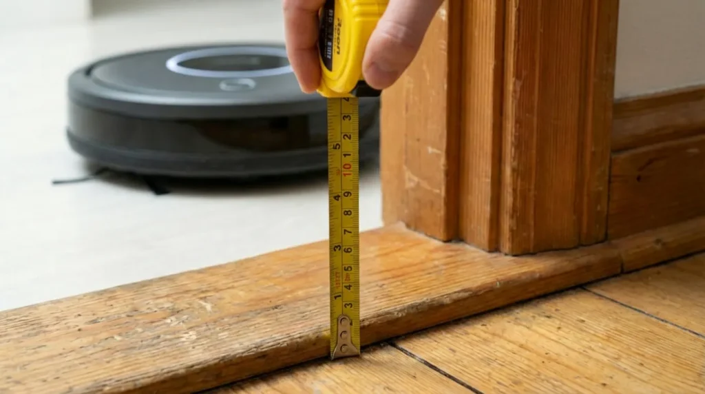 まずはメジャーを手に、家の中の「段差」を測ってみましょう。多くのロボット掃除機が乗り越えられる限界は「2cm」と言われています。