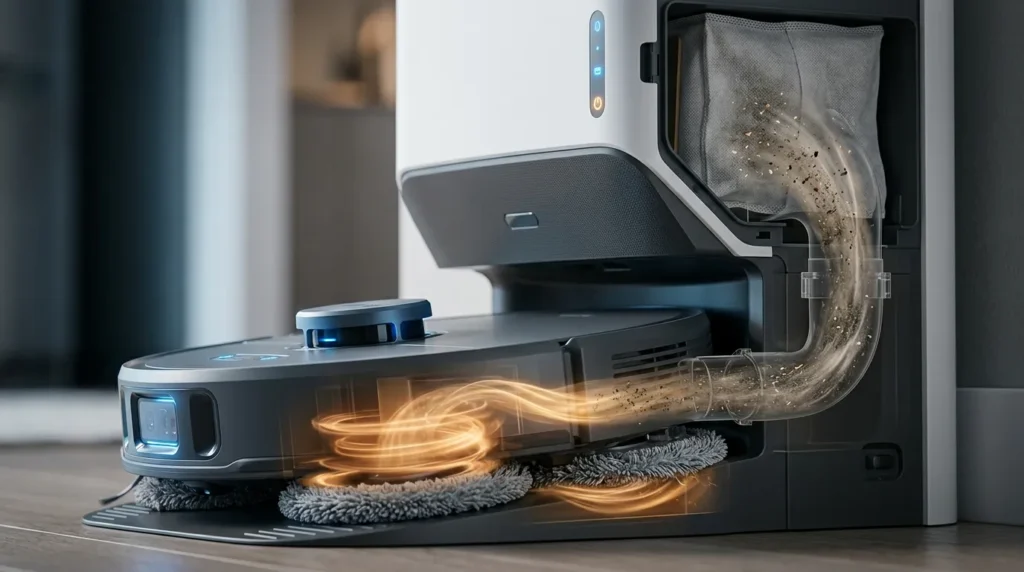 2026年、ロボット掃除機界に激震が走ったのはドローン技術の転用です。空を飛ぶための強力なモーター制御技術が掃除機に応用され、10万円以下のモデルでも20,000Paを超えるような、かつての数倍の吸引力を実現しています。カーペットの奥に入り込んだペットの毛や、フローリングの溝の微細な塵も、もう逃しません。