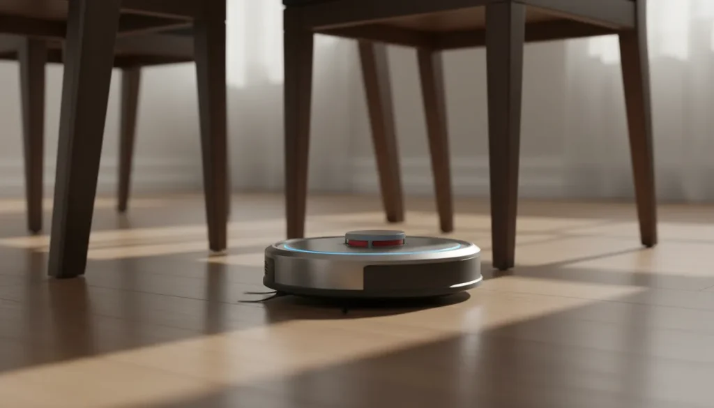従来のロボット掃除機は直径が35cm前後あり、椅子の脚の間(約40cm)を通り抜けるのがやっとでした。もし少しでも家具が入り組んでいれば、ロボットはすぐに「スタック(立ち往生)」してしまいます。