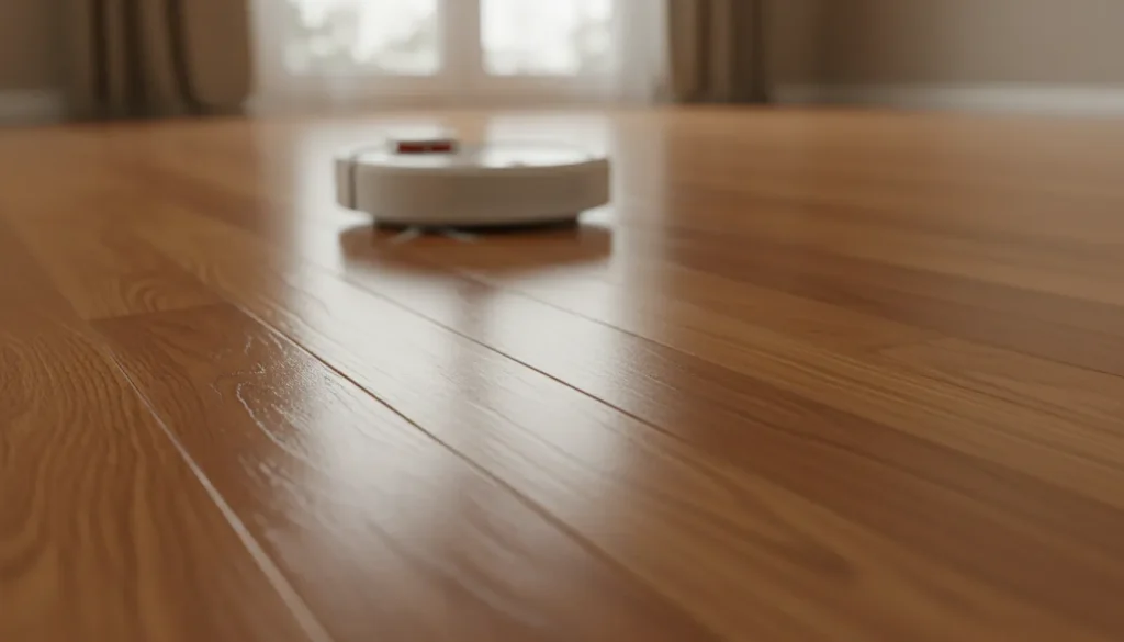 賃貸のクッションフロアや無垢材は水分に弱いです。アプリで「水拭き禁止エリア」を設定するか、ベースの下に必ず「防水シート」を敷いてください。