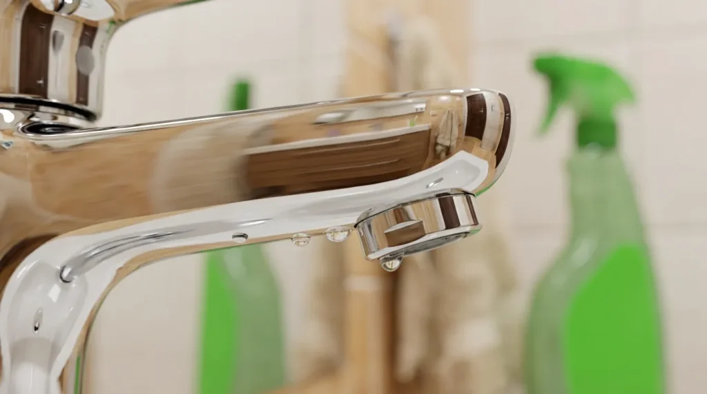 お風呂の鏡やくすんだ蛇口にも、ウタマロクリーナーが活躍します。中性なので、酸性洗剤のように金属を傷める心配が少ないのが嬉しいポイント。